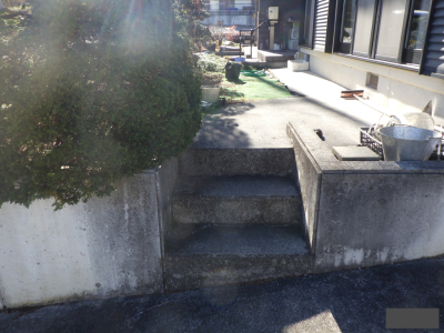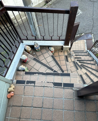 「階段横の石(土)の部分に支柱が立てられています。」 (イズミ)