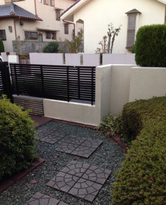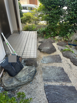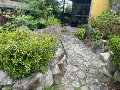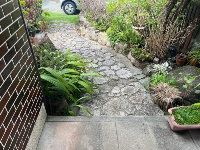 「飛石から玄関ポーチに上がる時に直角に曲がるのですが、一番使いやすく邪魔にならないように施工しました。」
