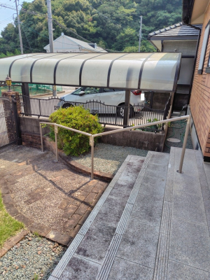 「カーポートからアプローチまでに細かな段差があり、転倒する危険性を下げるための手すりを設置しました。限られたスペースなので出来るだけ窮屈にならないように、話し合いながら設置位置を決めました。」