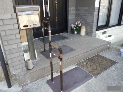 「手すりの取付けと段差解消の介護リフォームがされており、より安全に玄関ポーチを歩行できるようになったのではないでしょうか。」 (イズミ)