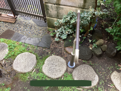 「手すりは玄関ポーチから門扉までの移動に使用されます。支柱は全て土に埋込みました。手すりは景観を損なわないように支柱の位置に気をつけながら繋げました。」