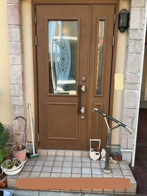 「アプローチから玄関に入るまでの手すりを設置しました。写真ではわかりにくいですが、道路からの手すりと玄関先の手すりを連続させていないのは建物の廻りに行けるように通路を確保するためです。」