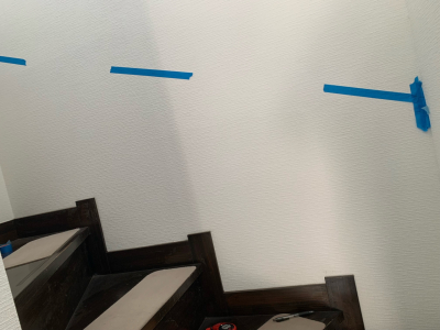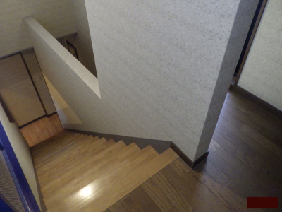 「鉄骨下地階段でしたが、壁補強部材がうまく固定できたので長い階段でも納まりました。」