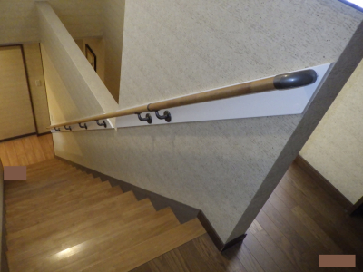 「2階に玄関のあるご自宅のため、階段を使い出入りされています。利用者様は認知症状があり、階段の昇降が危険な状態のため、手すりを取付けました。」