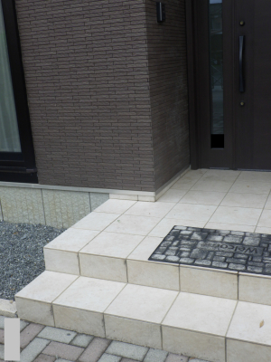 「飛石から玄関ポーチに上がる時に直角に曲がるのですが、一番使いやすく邪魔にならないように施工しました。」