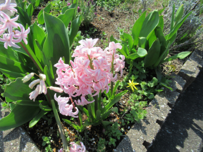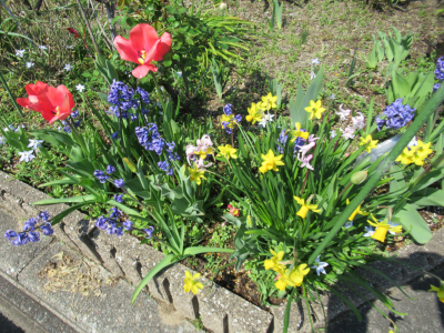 赤色のチューリップや桃色のヒヤシンス、黄色のスイセンなどの花たちで春の彩りを感じます。