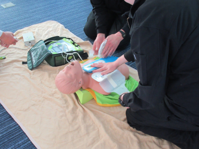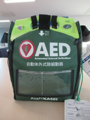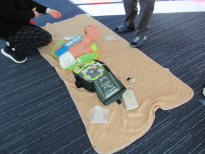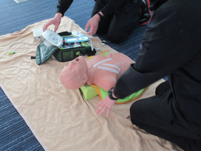 初めにAEDの使い方を教えていただき、そのあと社員が交代で実地訓練をしました。